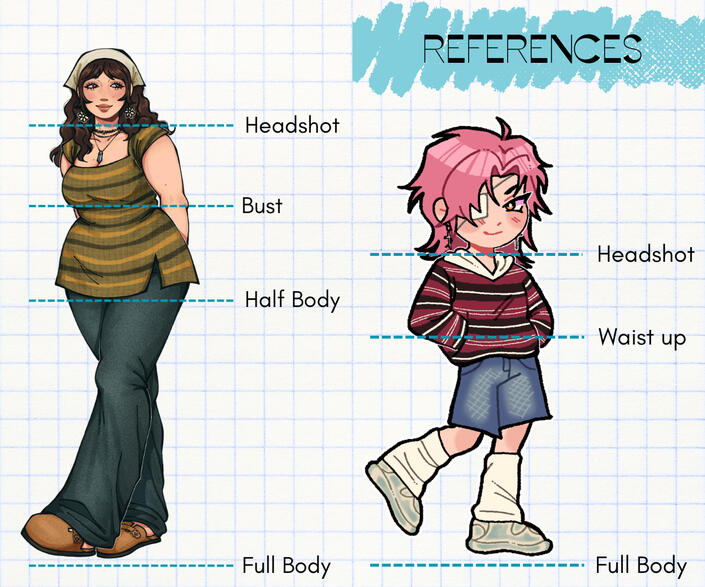 ◆ If you want to ask for a commission, please add in your message request references of your characters, the pose you want, expressions or any other important details for the drawing.